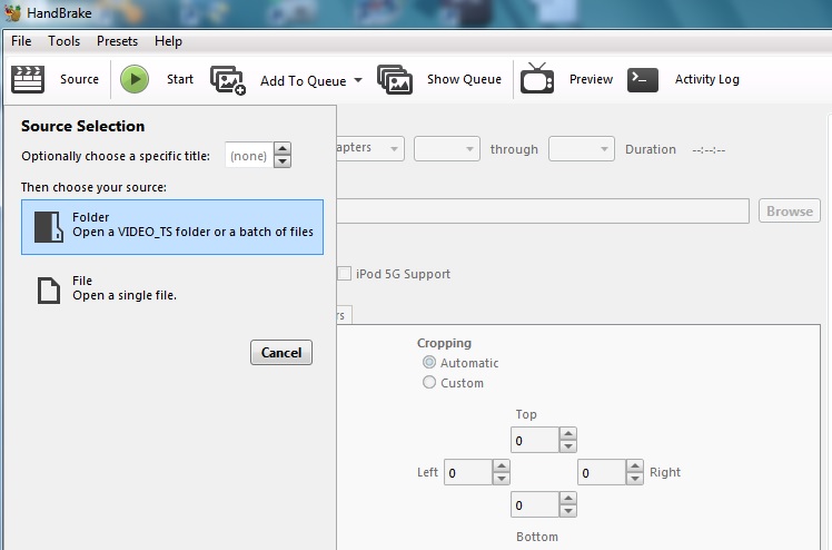 Ripping a DVD or Blu-ray (unencrypted and copied to HDD) is simple. You open HandBrake, choose the source file location. You also have the option of ripping directly from disc or a single file. This may imply ISO but I’m not too sure.