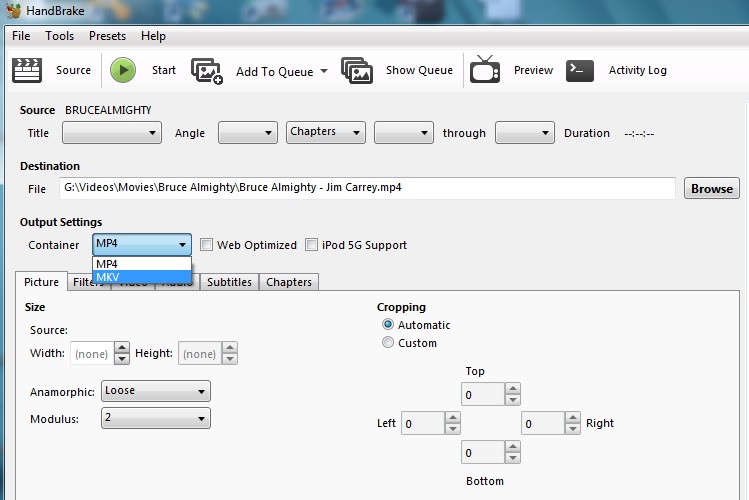 Rip DVD or Blu-ray videos to MKV (using HandBrake)