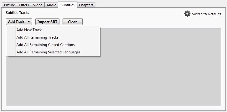 In the MKV container, you can add subtitles, different audio files, create markers and name chapters. The subtitle option is pretty cool as you can add several and have the choice of having it ‘burned it’ or ‘forced only’.